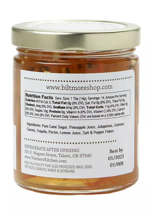 Spice up your next cheese board with the sweet suprising heat of this Biltmore® Tequila Pepper Jelly. A balanced blend of tequila, Jalapenos, Pineapple juice, and lemon.
