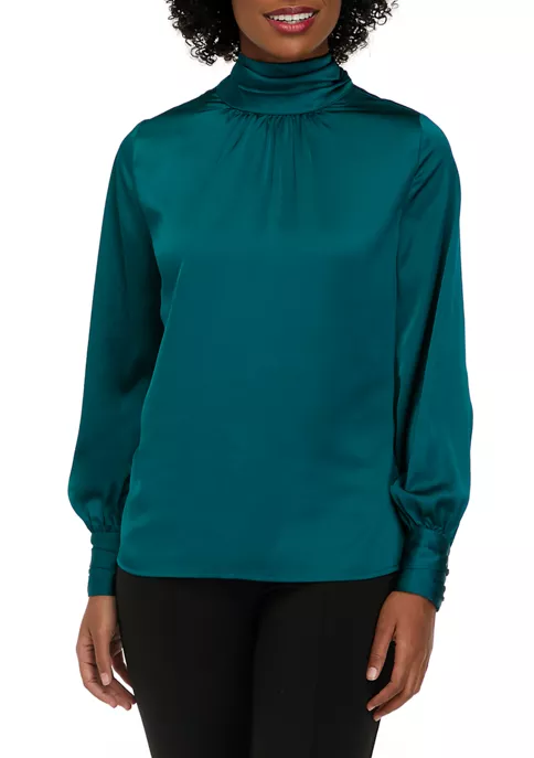 A beautiful bow and billowy blouson sleeves add feminine charm to this top from Biltmore®.