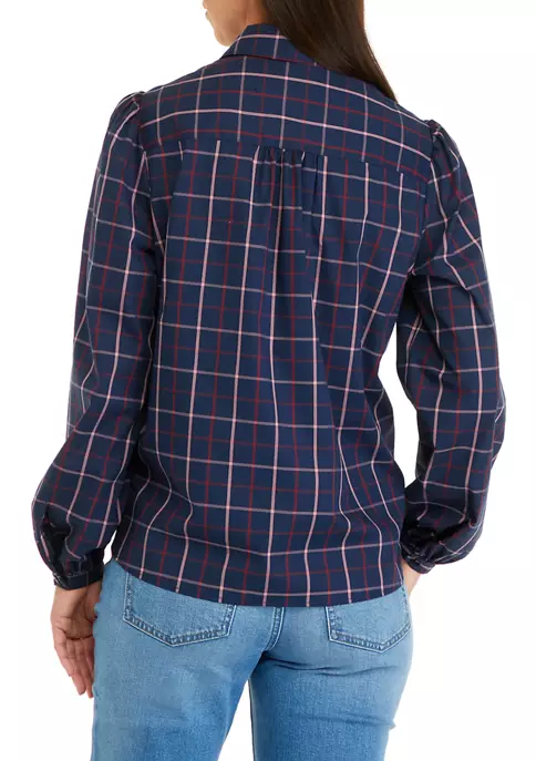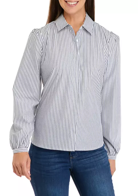 Designed to hit at the hip, this button-down shirt from Biltmore® features balloon sleeves with a slight puff at the shoulder and stretch fabric for the perfect fit.